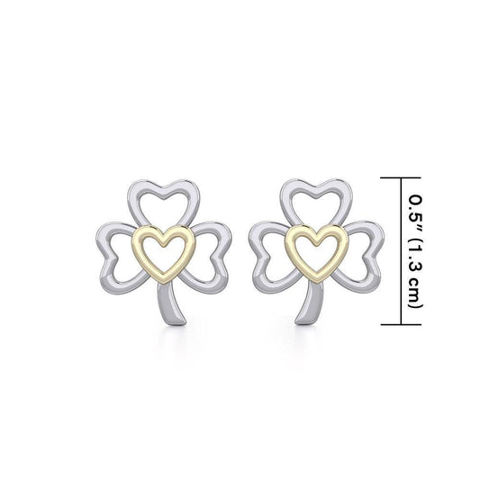 14K Gold Accent Heart in Shamrock Sterling Silver Post Earrings MER1778