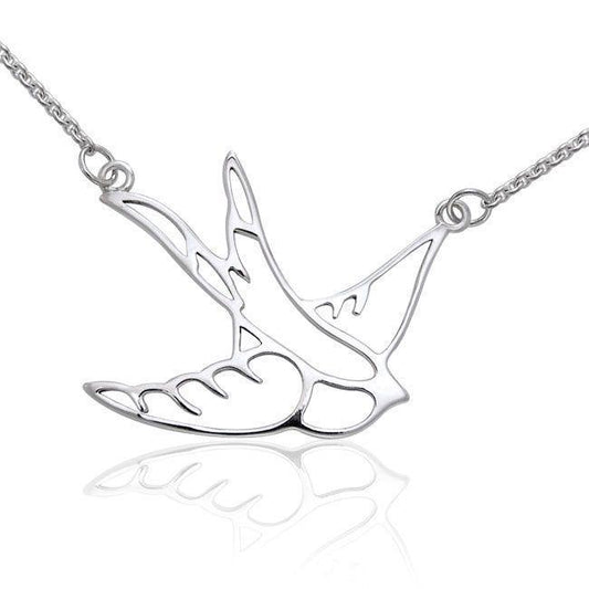 Fly to no boundaries and limits ~ Celtic Knotwork Bird Sterling Silver Necklace Jewelry TN294