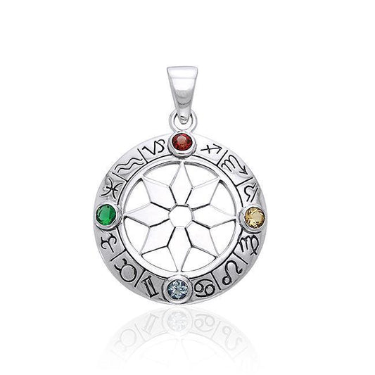 Zodiac Symbol Wheel Silver Pendant TPD876