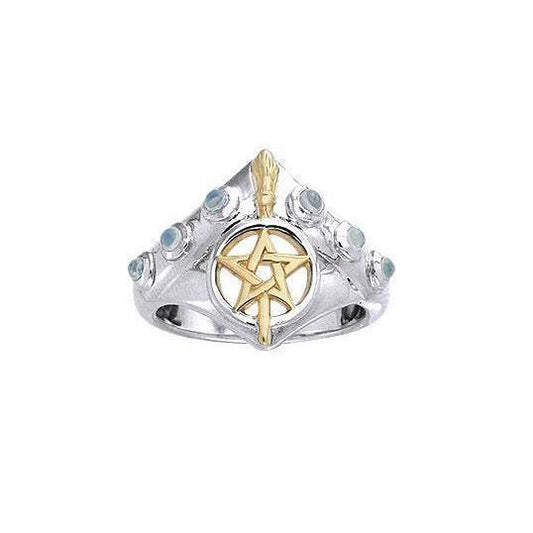 Broomstick & Pentagram Silver and 18K Gold Accent Ring MRI343