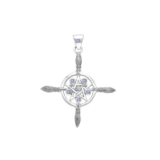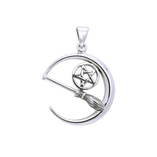 Crescent Moon Pentacle with Broom Sterling Silver Pendant TPD3386