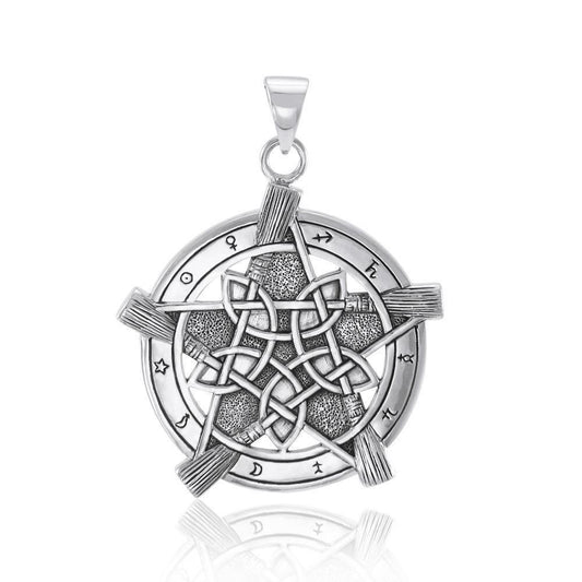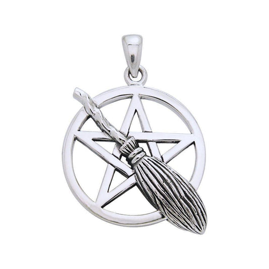 Broom on Pentagram Sterling Silver Pendant TPD3138