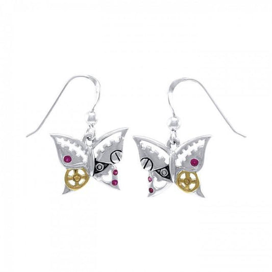 Fluttering butterflies in my heart ~ Sterling Silver Steampunk Hook Earrings with 14k Gold accent MER1370