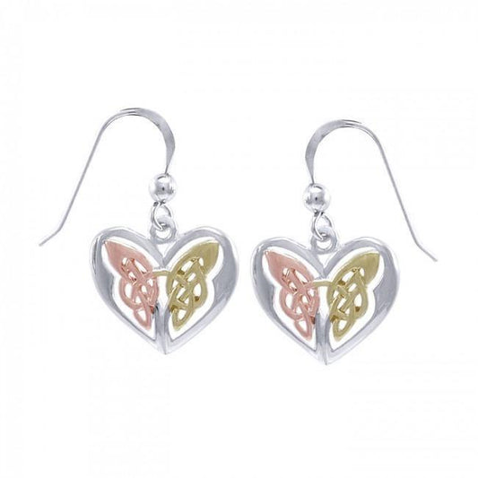 Celtic Knotwork Butterfly Eternal Heart Three Tone Earrings OTE2935