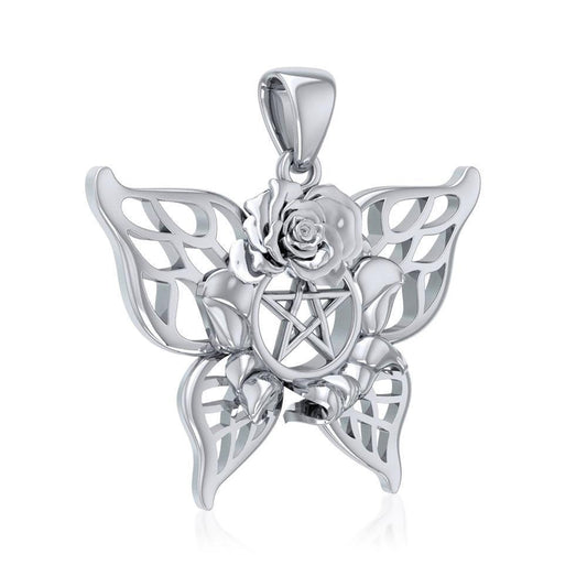 Butterfly with Rose and Pentacle Sterling Silver Pendant TPD5029