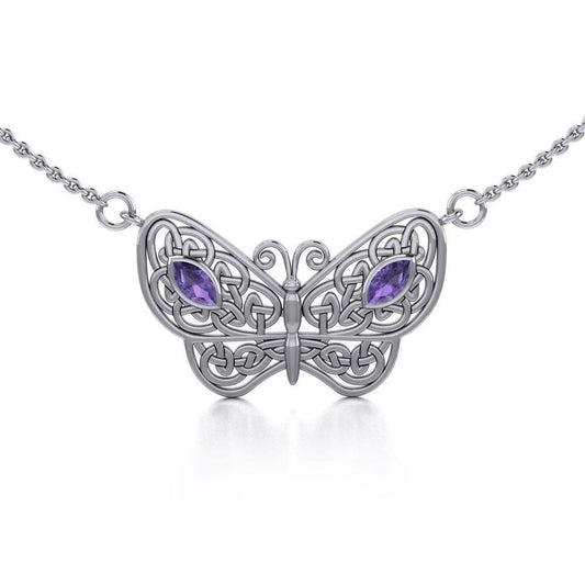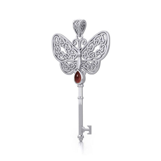 Celtic Butterfly Spiritual Enchantment Key Silver Pendant with Gem TPD5686
