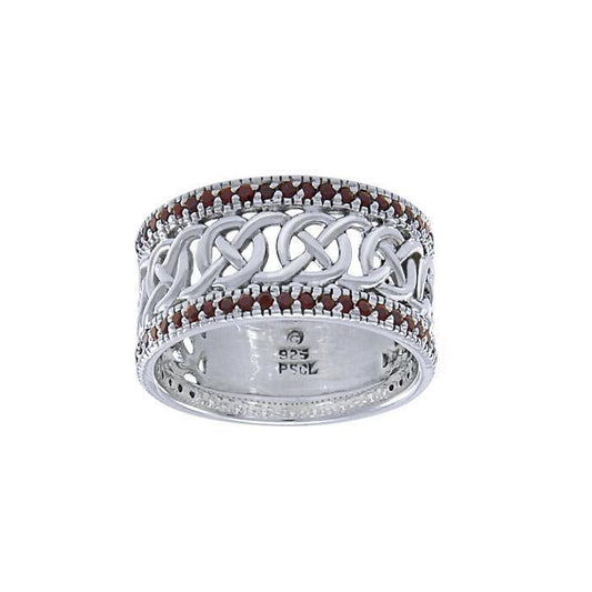Celtic Knotwork Silver Band Ring with Gemstones TRI1949