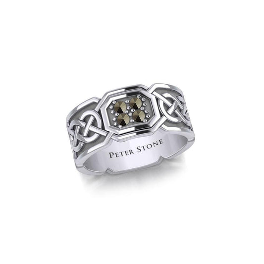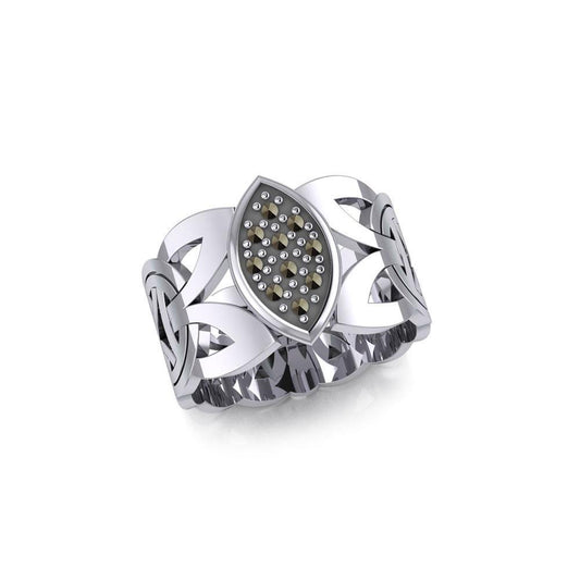 A world-class elegance and pride ~ Celtic Knotwork Sterling Silver Ring with gemstone TRI1435