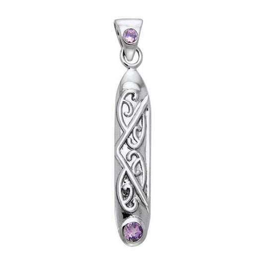 Celtic Maori Long Sterling Silver Pendant with Gemstone TPD1214