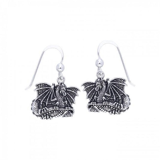 Dragons fly as they float ~ Sterling Silver Hook Earrings TE898