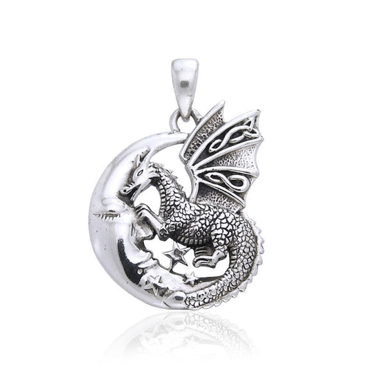 Fusion of power and grace ~ Dragon with crescent moon Sterling Silver Pendant TP3101