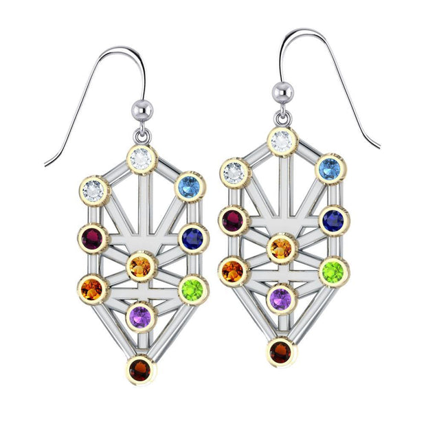 Kabbalah with Chakra Gemstone Sterling Silver and 14K Gold Accent Earrings MER1717