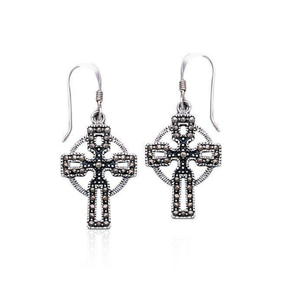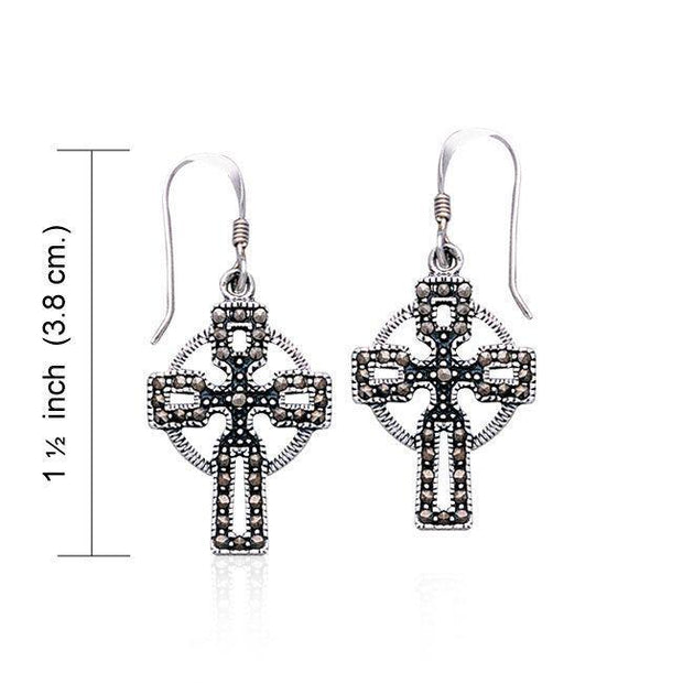 Celtic Cross with Marcasite Sterling Silver Earrings VE060