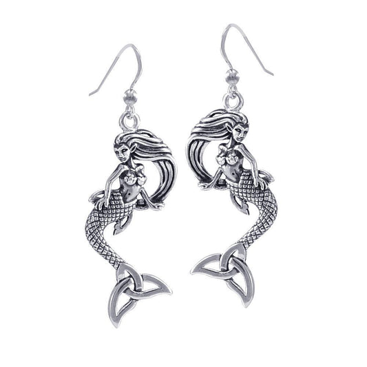 Lovely Mermaid Goddess with Trinity Knot Sterling Silver Earrings TER1663