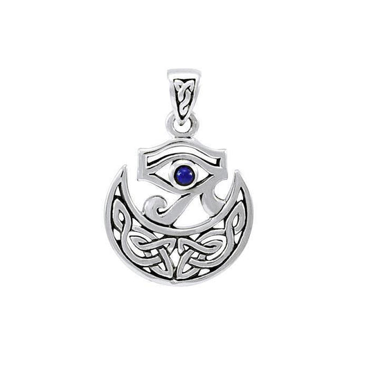 Eye of Horus with Celtic Knot Crescent Moon Silver Pendant TPD4275