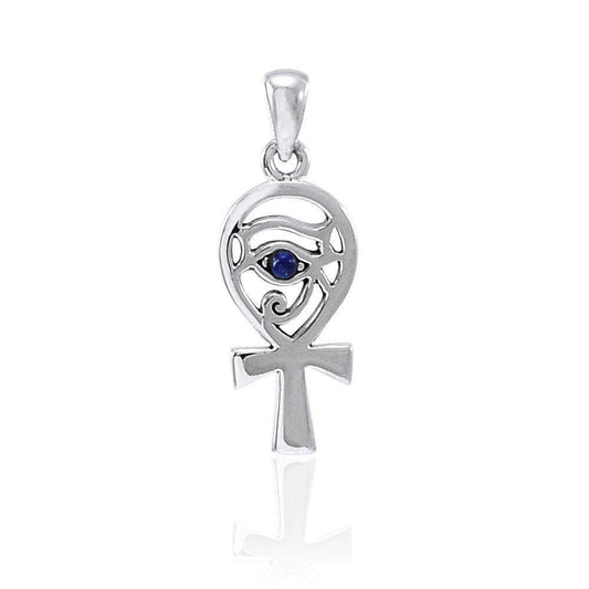 Ankh with Eye of Horus Silver Pendant with Gem TPD4253