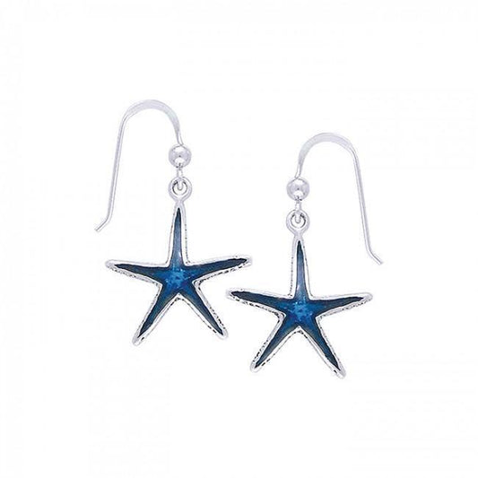 Starfish Sterling Silver Earrings With Navy Enamel TER015