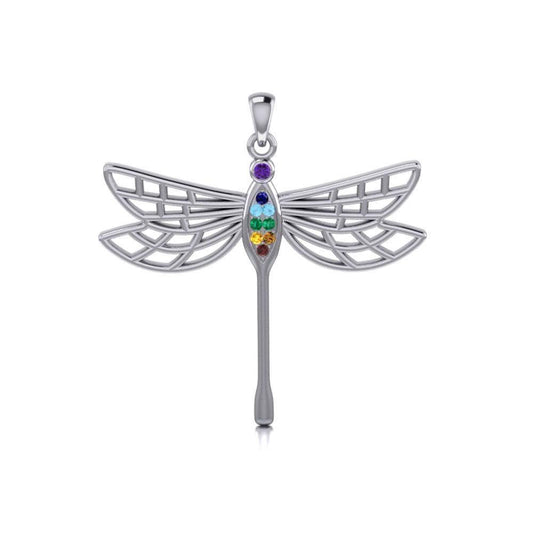 Lovely Spiritual Chakra Dragonfly Sterling Silver Pendant TPD4214