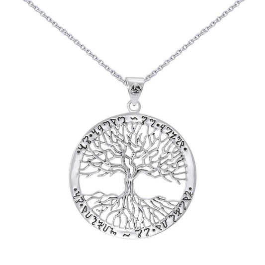Wiccan Tree of Life with Rune Sterling Silver Pendant and Chain Set by Mickie Mueller TSE737