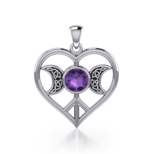 Triple Goddess Love Peace Sterling Silver Pendant with Gemstone TPD5106