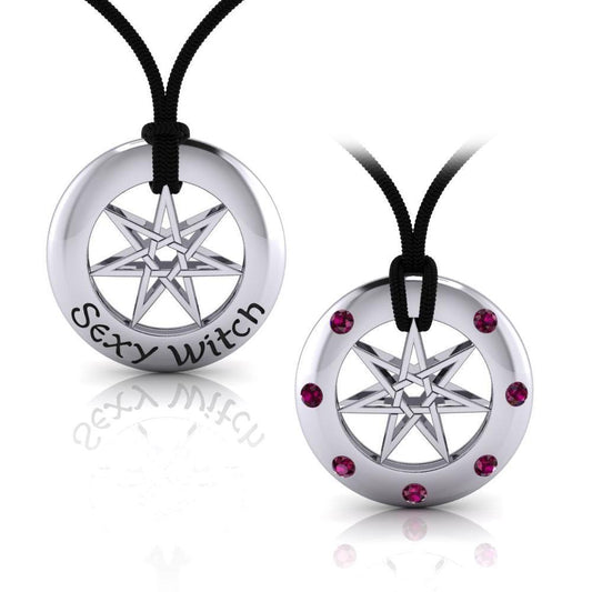 Sexy Witch Seven Pointed Star with Gemstones Silver Pendant Set TSE428