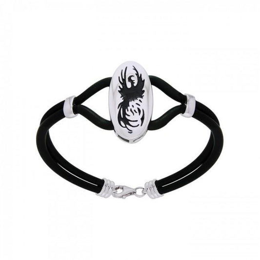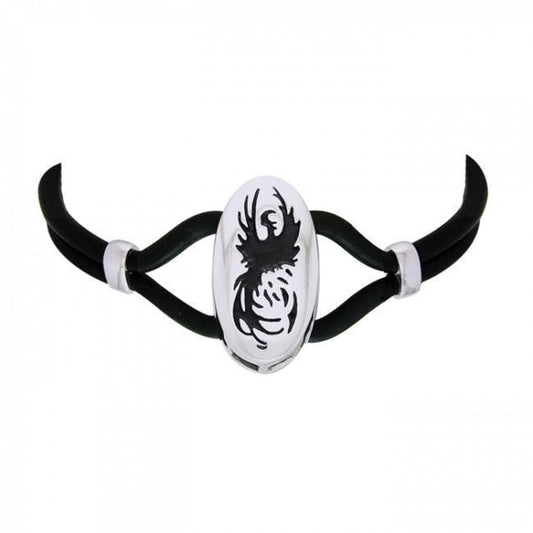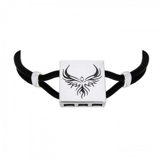 Sterling Silver Rising Phoenix Leather Cord Bracelet TBL201