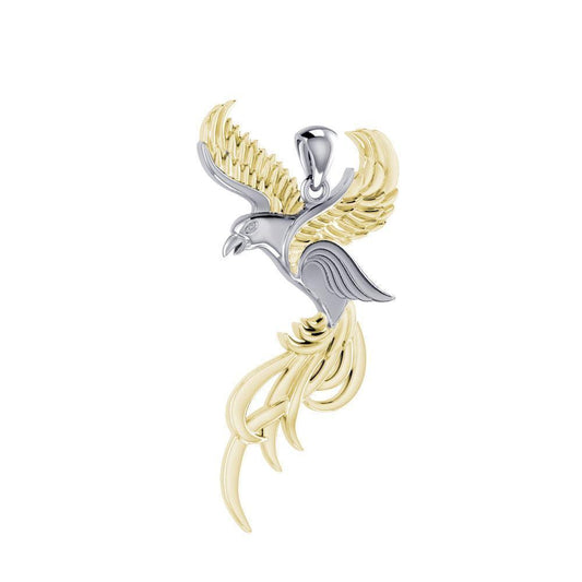 Soar to the Heavens Flying Phoenix Silver and 14K Gold Accent Pendant MPD5072