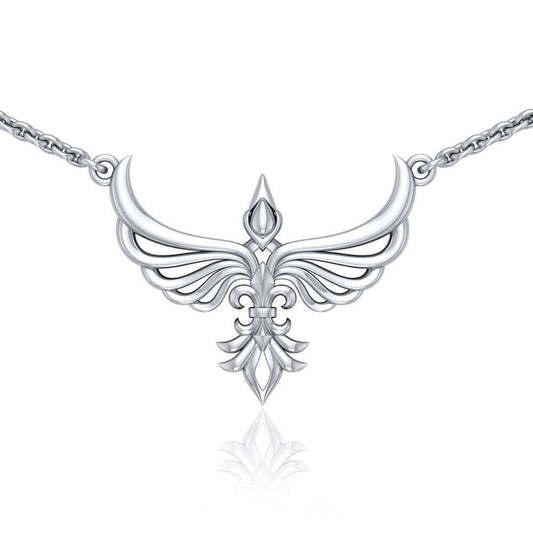 Phoenix with Fleur De Lis Sterling Silver Necklace TNC449