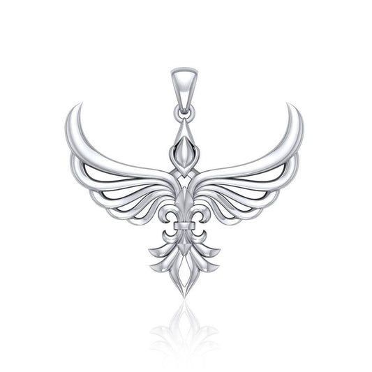 Phoenix with Fleur De Lis Sterling Silver Pendant TPD5089