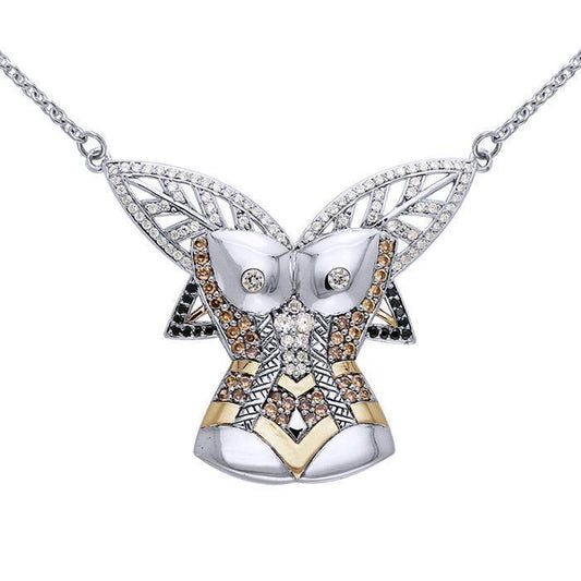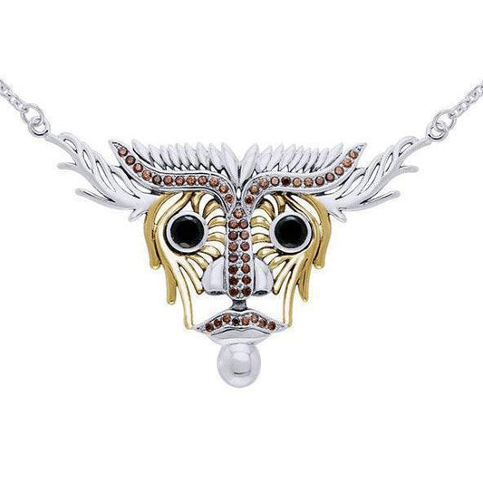 Dali-inspired fine Sterling Silver Animal Head Jewelry Necklace in 14k Gold accent