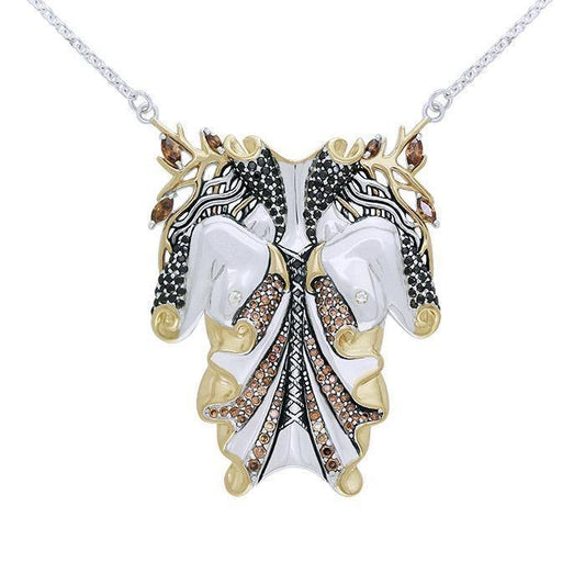 An impressive reminder of Dali’s art ~ fine Sterling Silver Necklace in 18k Gold overlay accented with Brown Diamonds and Black Spinel MNC137