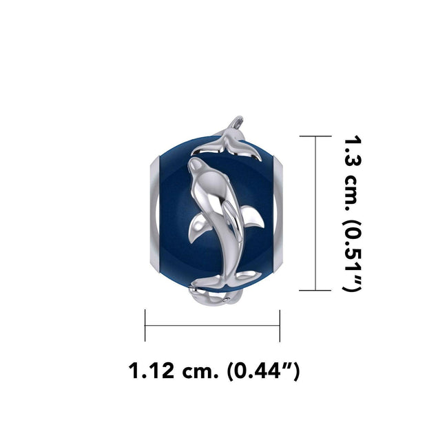 Double Dolphin With Heart Gemstone Sterling SIlver Pendant TPD6441