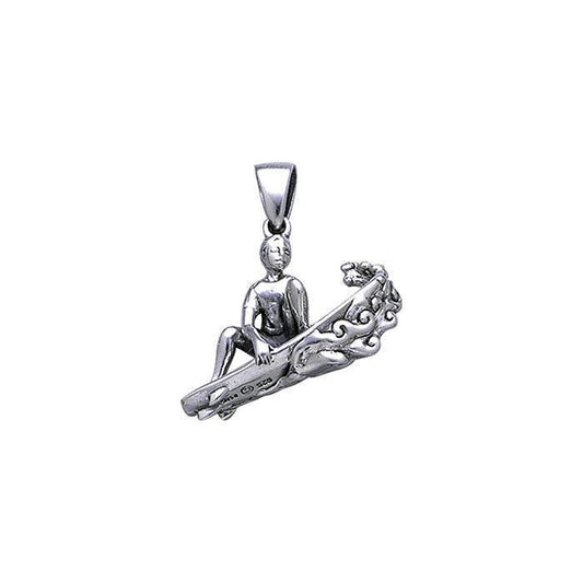 Mermaid Surfboard Sterling Silver & 14K Gold Accent Pendant MPD077