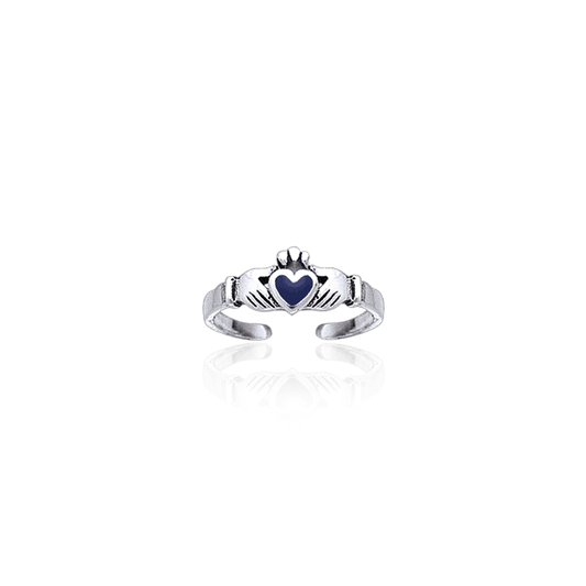 Irish Claddagh Silver Toe Ring with Inlay TR3725