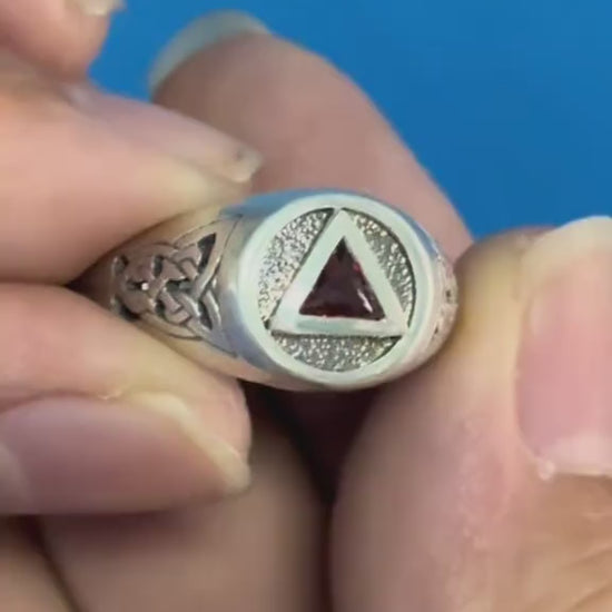 Inspiringly crafted from fine sterling silver, the Celtic AA Recovery Symbol Silver Ring with Gemstone features The Celtic detailed and hand-crafted quality from the world class artisans at Peter Stone.