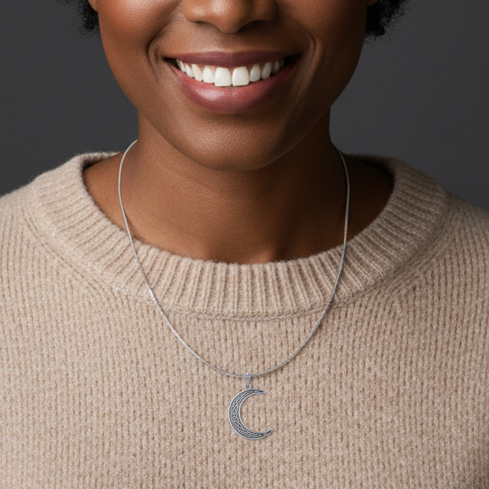 Embrace Celtic heritage with this crescent moon pendant, expertly crafted from solid brass and finished with sterling silver plating for lasting elegance. The crescent design carries symbolic significance in Celtic tradition, representing cycles, protection, and feminine energy. This piece combines authentic craftsmanship with accessible luxury the brass core ensures durability while the silver plating delivers the refined aesthetic of precious metal jewelry. Ideal for collectors, spiritual practitioners, or anyone drawn to Celtic symbolism, this pendant makes a meaningful addition to any collection or a thoughtful gift for those who appreciate artisanal metalwork.