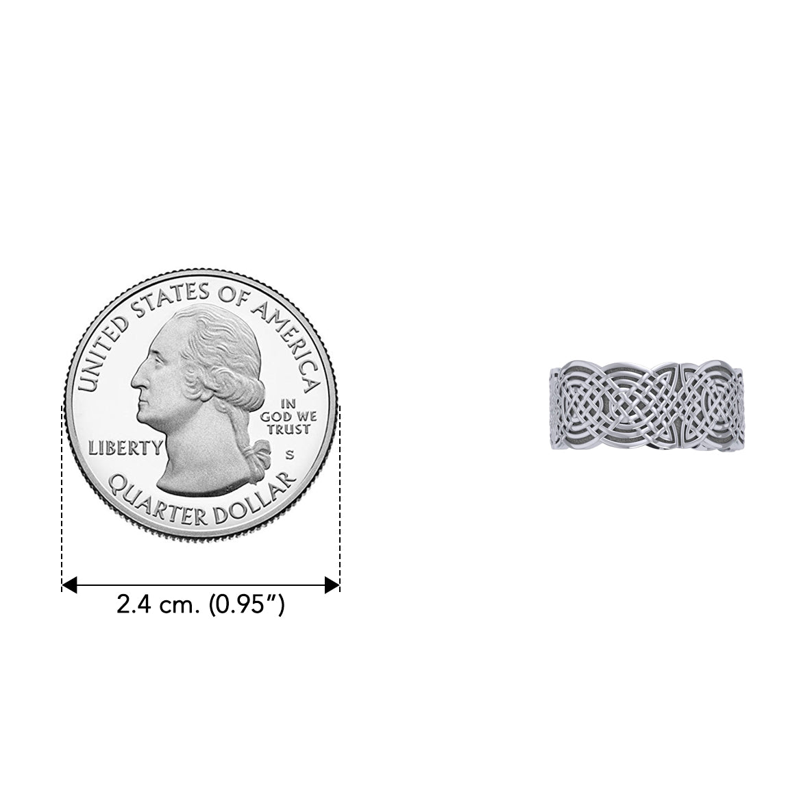 Beyond words, Celtic knots are the most recognizable artwork in Celtic history. They are mystic knots. Endless. Celtic Knots remind us of the timeless nature of our spirit inspired in this unique sterling silver ring of Peter Stone Jewelry. The knots are overlapped and interwoven with no definitive beginning or end. The points interweave to connect the spiritual and physical representing the closest of all connections. The Celts called this style “pure”, and it symbolized the way in which they choose to live their lives - to accentuate the interconnectedness of all of life and the eternal.