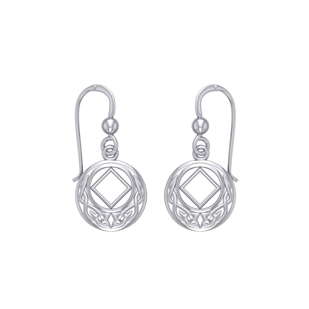 Crafted from .925 sterling silver, the earrings feature an elegant Celtic knot motif, representing unity and the endless cycle of renewal. At the heart of the design lies the NA recovery symbol, a reminder of strength, personal growth, and the ongoing journey toward healing. Their lightweight construction and secure hooks make them ideal for both everyday wear and special occasions.