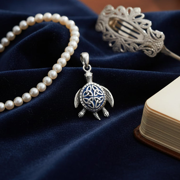 This Celtic Sea Turtle pendant combines traditional Celtic artistry with maritime symbolism. Crafted from solid brass and finished with sterling silver plating, it delivers authentic craftsmanship with lasting durability. The intricate knotwork design honors Celtic heritage while the sea turtle motif represents wisdom, longevity, and protection. Ideal for collectors and those seeking meaningful jewelry with cultural significance. The sterling silver plating ensures a polished, professional appearance suitable for both everyday wear and special occasions.