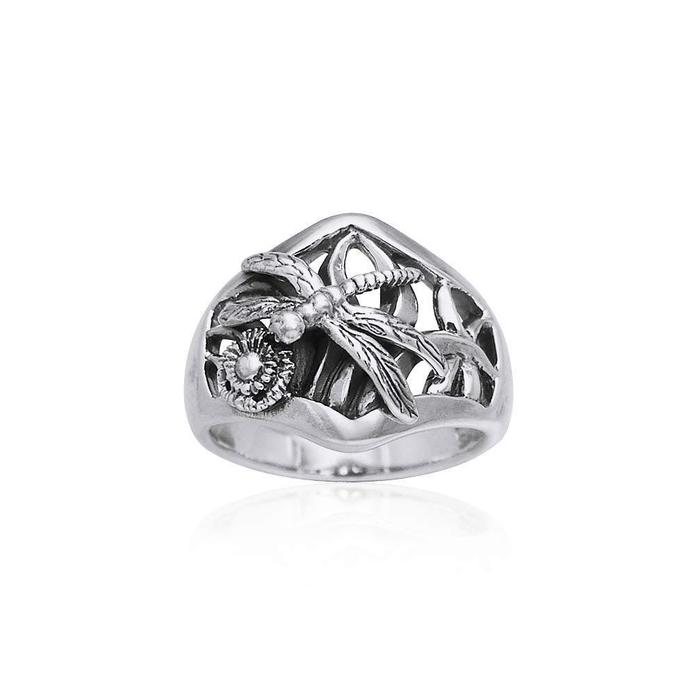This Dragonfly Silver Ring embodies flexibility and change, transferring the power of the dragonfly to the wearer. A Dragonfly's iridescent wings are sensitive to even the slightest breeze, allowing the dragonfly to travel wherever the wind blows.