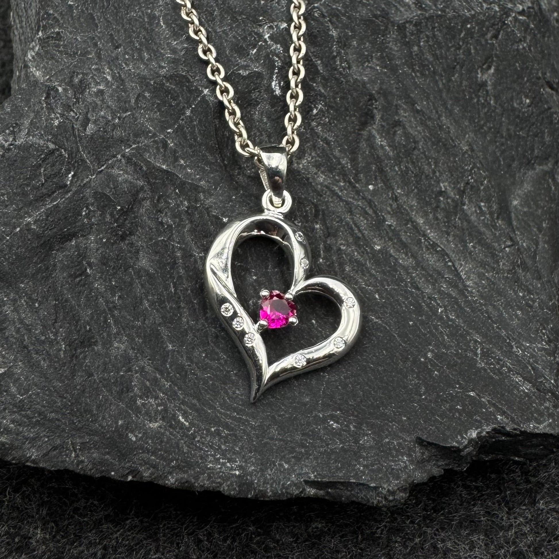 This elegant heart-shaped pendant is crafted with genuine sterling silver and adorned with a sparkling gemstone, making it a perfect accessory for any occasion. Its intricate design and quality materials make it a luxurious addition to any jewelry collection.