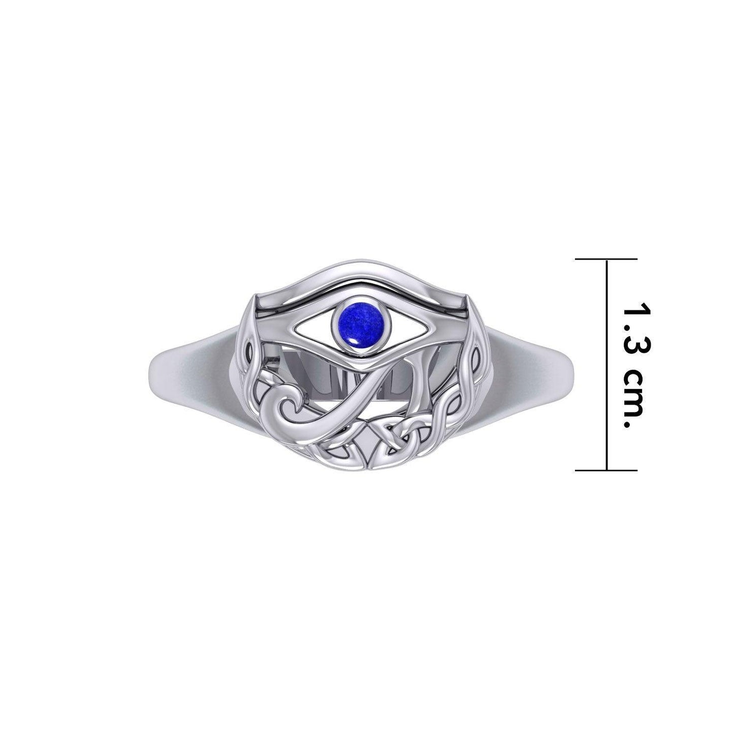 Modeled after the pendant (TPD4275), this inspired, handcrafted, sterling silver Eye of Horus ring fuses delicate Celtic knotwork and crescent moons into an inspired, protective talisman worn on your finger.