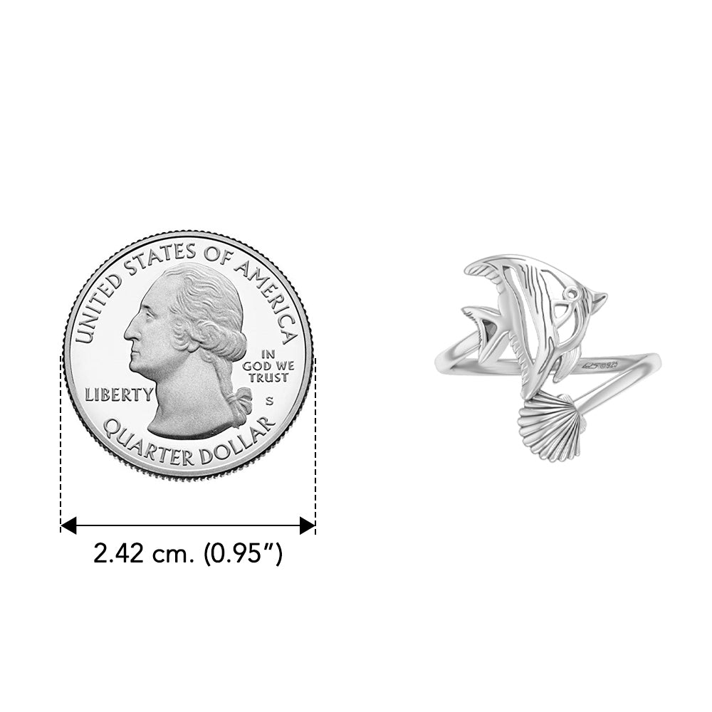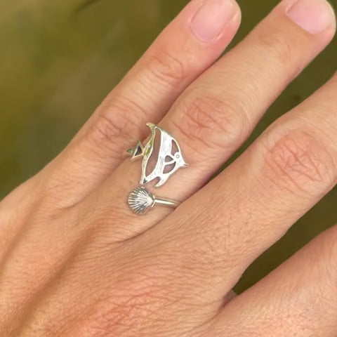 Angel Fish With Seashell Sterling Silver Ring TRI2345