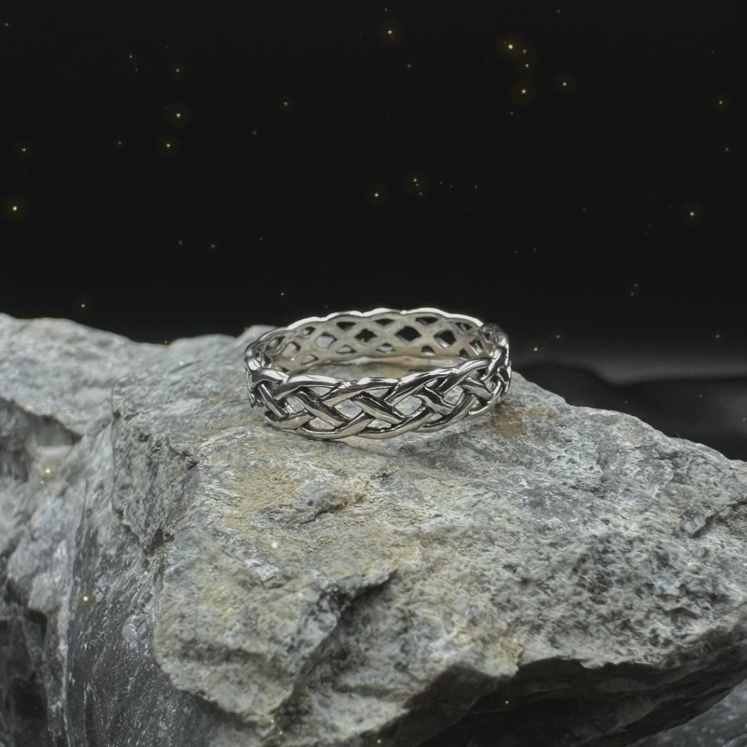This hollow interwoven Celtic Knotwork band by Peter Stone in striking sterling silver is a powerful reminder of the richness of the eternal.