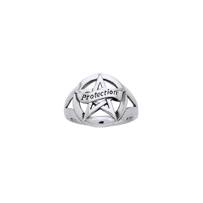 Protection Pentagram Silver Ring offers a blessing of protection to all who wear it! This sterling Silver ring features a The Star with a delicate ribbon proudly displaying the word "Protection"