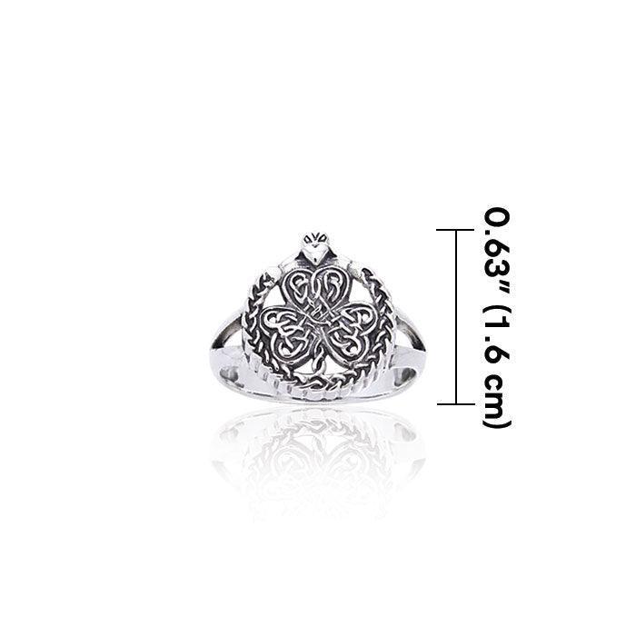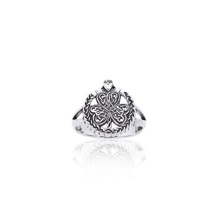 Shamrock Celtic Knot Claddagh Sterling Silver Ring TRI538