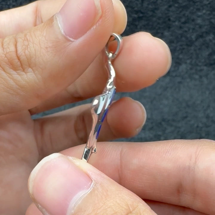 Inspired by the elegant and majestic movements of manta rays as they glide through the ocean, this pendant features intricate detailing and an inlaid rectangle that enhances its unique charm. It's a striking and eye-catching addition to any ensemble, perfect for those who appreciate the beauty and mystique of marine life.