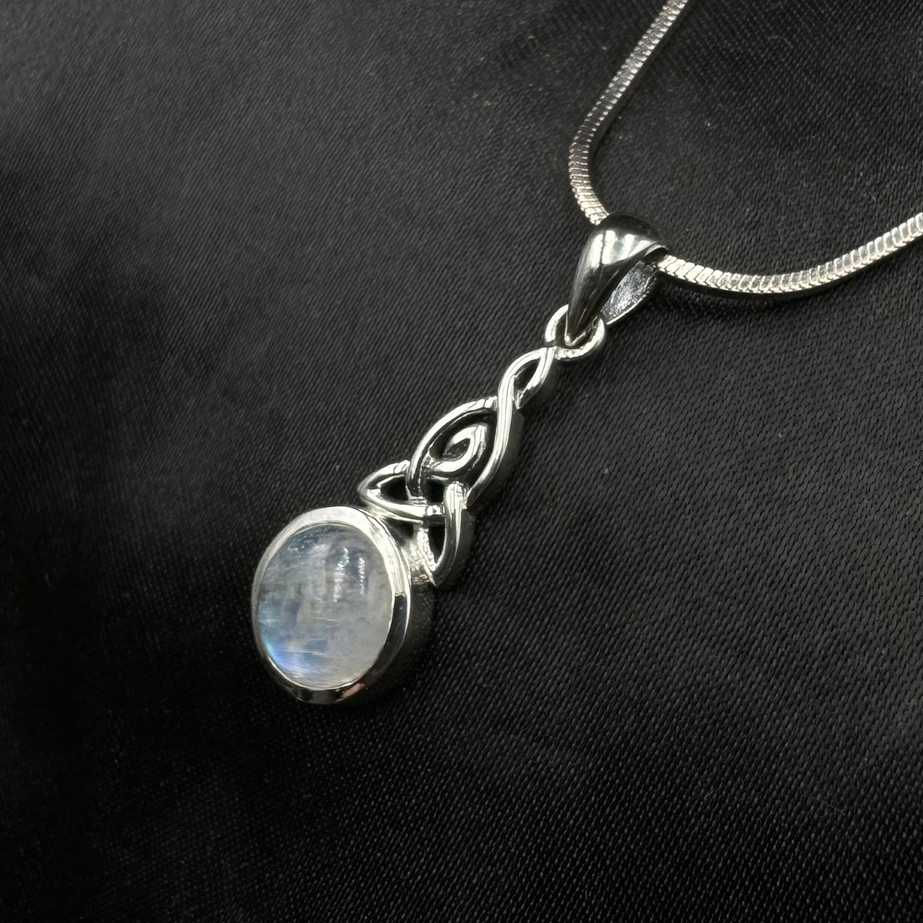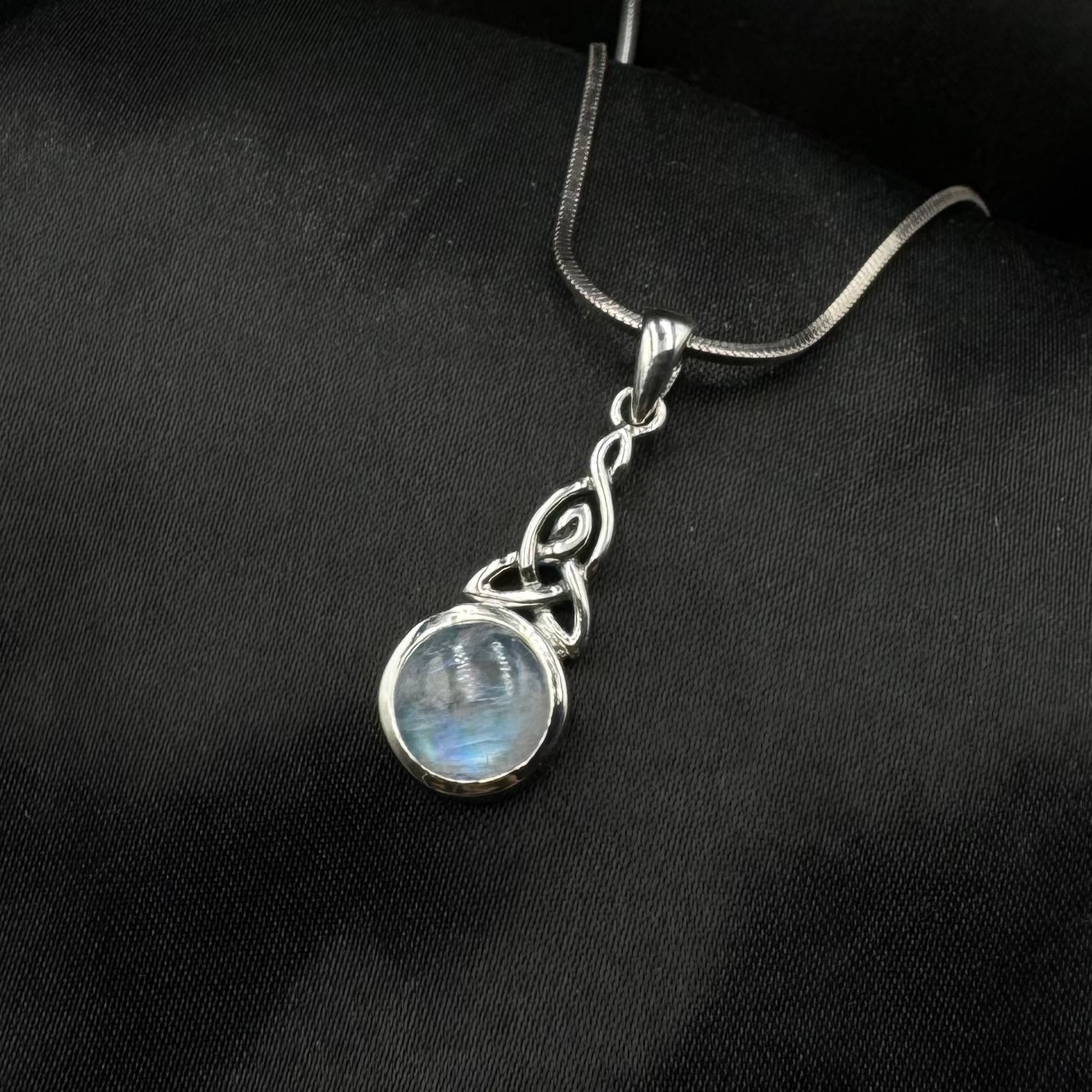 The Celtic Triquetra is a powerful statement that manifests throughout the Celtic region associated with the three elements of nature – water, earth, and air. Water depicts our emotions, air symbolizes our thoughts, and the earth is us. Peter Stone combines a simple design framed with a symbolic representation in this sterling silver pendant that blends in the powerful message of Trinity and a gemstone elegance of your choice. When the mind, body, and spirit are in harmony, happiness is the natural result.