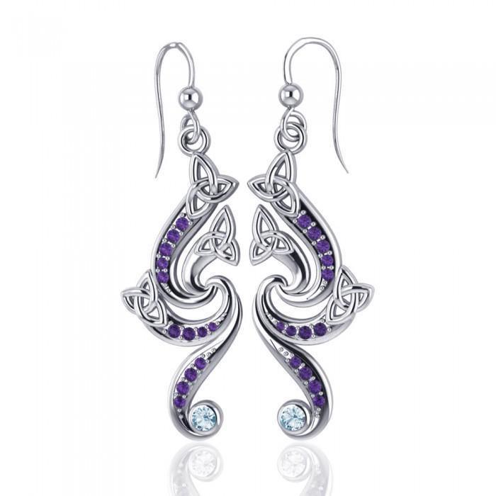 A grand unity in full symbolism ~ Celtic Triquetra Sterling Silver Dangle Earrings with Gemstones TER569