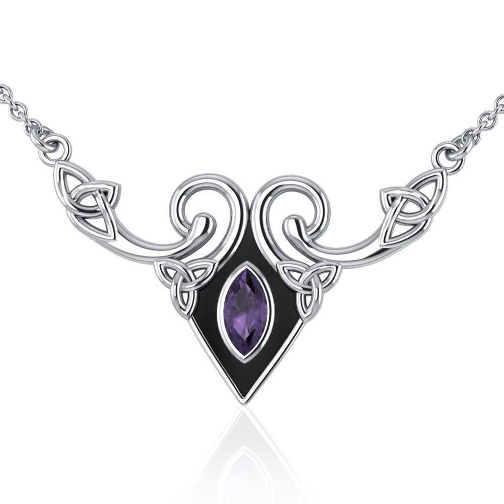 A gift of the world ~ Celtic Triquetra Sterling Silver Necklace with Gemstones TNC159